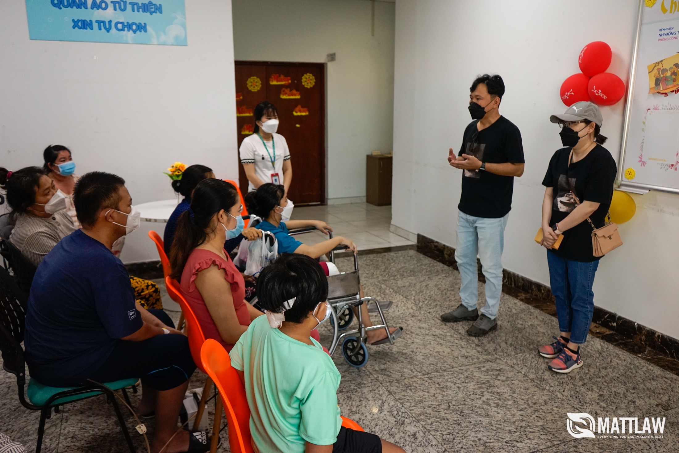 Ngoài ra, trong cùng ngày chị Phan Như Quỳnh - CEO của MattLaw - cũng đã trao tặng 30 phần quà tết và tiền mặt đến các bệnh nhi có hoàn cảnh đặc biệt khó khăn tại Bệnh viện Nhi Đồng Thành Phố (15 Võ Trần Chí, Tân Kiên, huyện Bình Chánh, Tp.HCM).